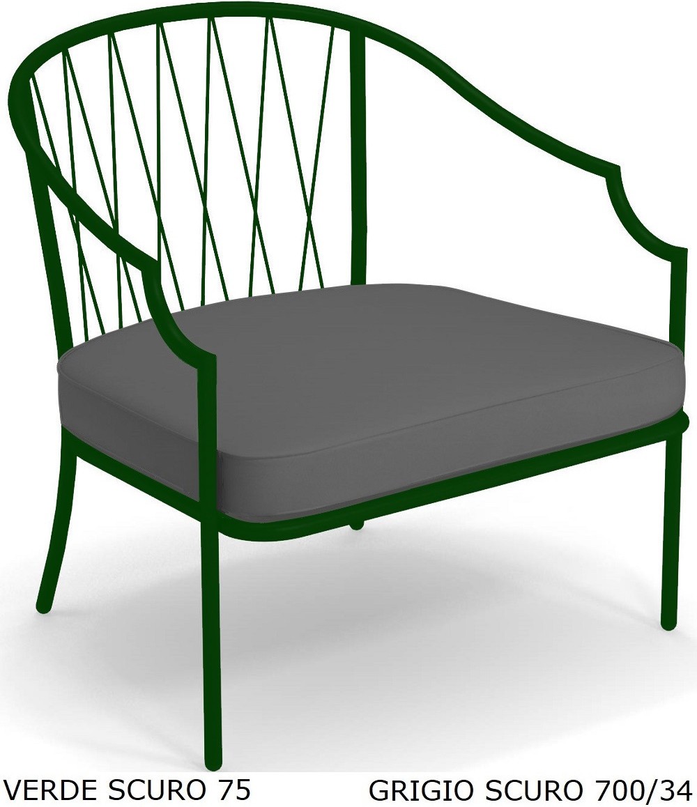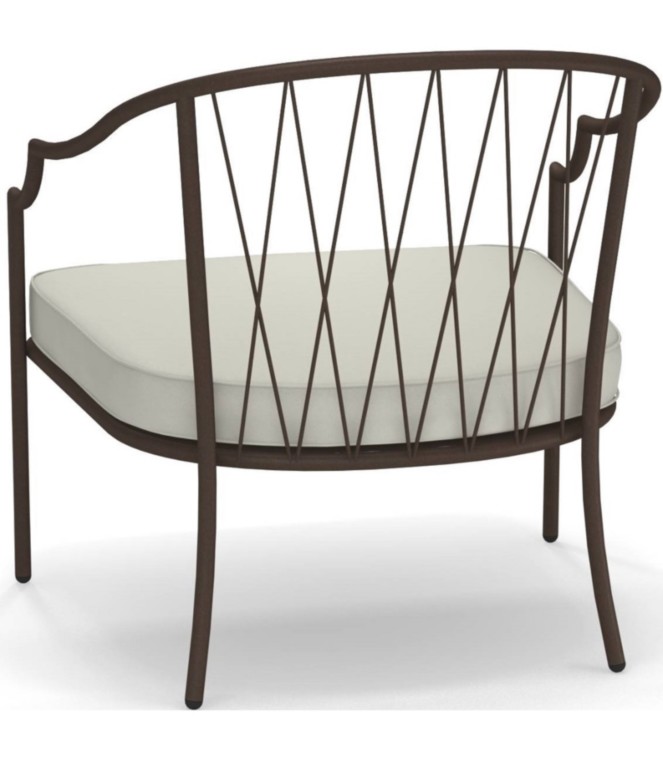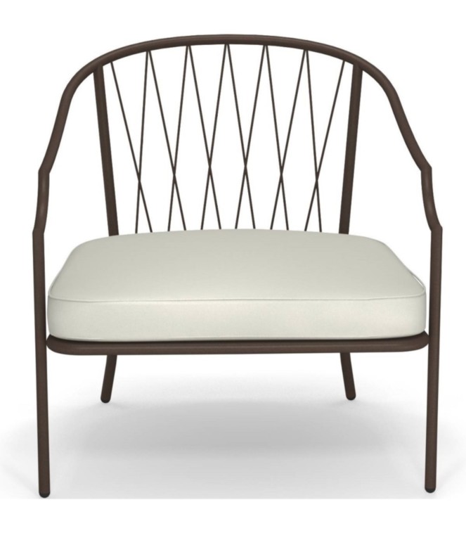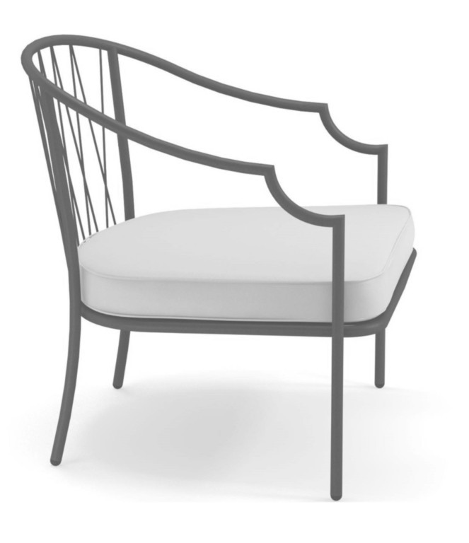 Poltrona Lounge per salotto in acciaio. Seduta in lamiera stirata e schienale in tondino. Struttura in tubolare a sezione rotonda