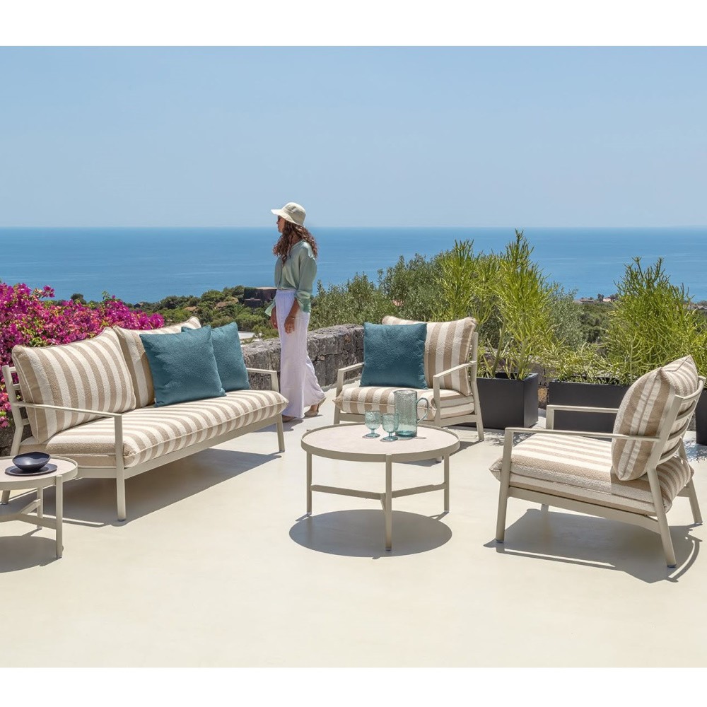 Il divano Finn T-Young Talenti è un equilibrio perfetto tra linee pulite e volumi generosi, leggero ma resistente, sostiene una seduta profonda e confortevole. Ideale per ambienti outdoor moderni dove stile e funzione convivono in armonia.