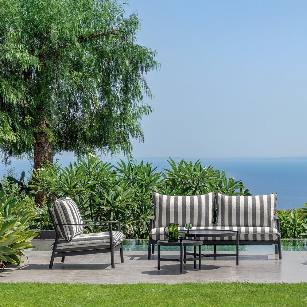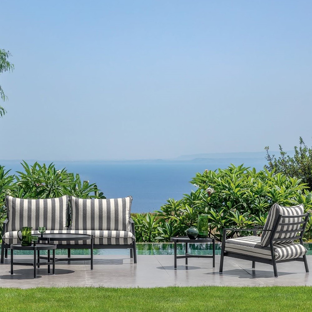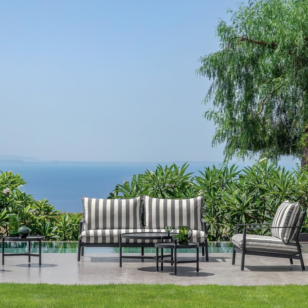 Linee nette, volumi asciutti e un tessuto rigato disegnano un profilo elegante ma discreto. Finn non cerca di stupire, ma di integrarsi con naturalezza nel paesaggio, trasformando terrazze, giardini e rooftop in luoghi di calma funzionale.