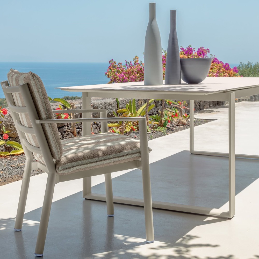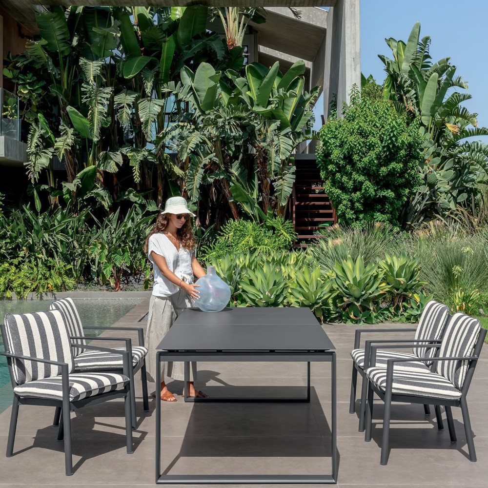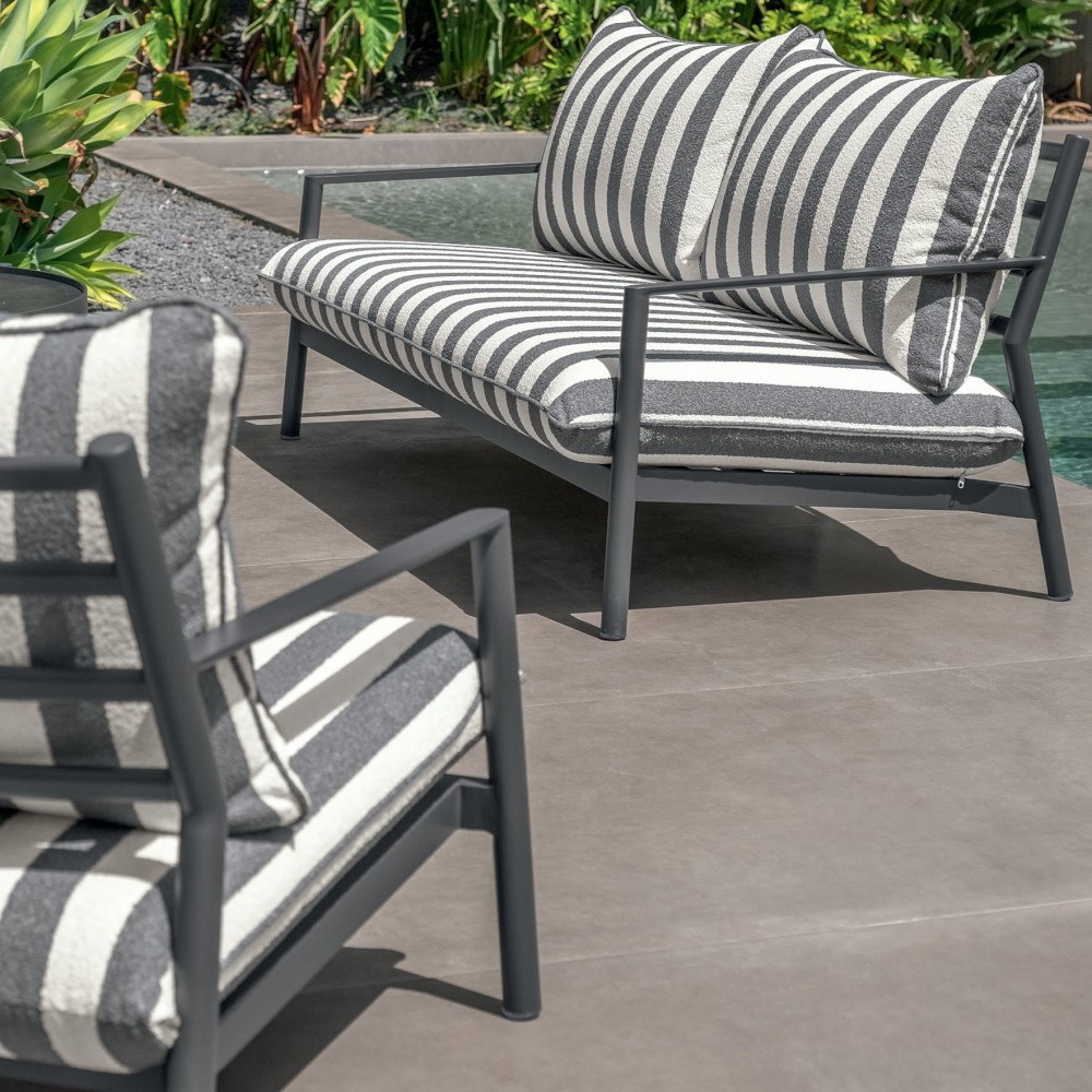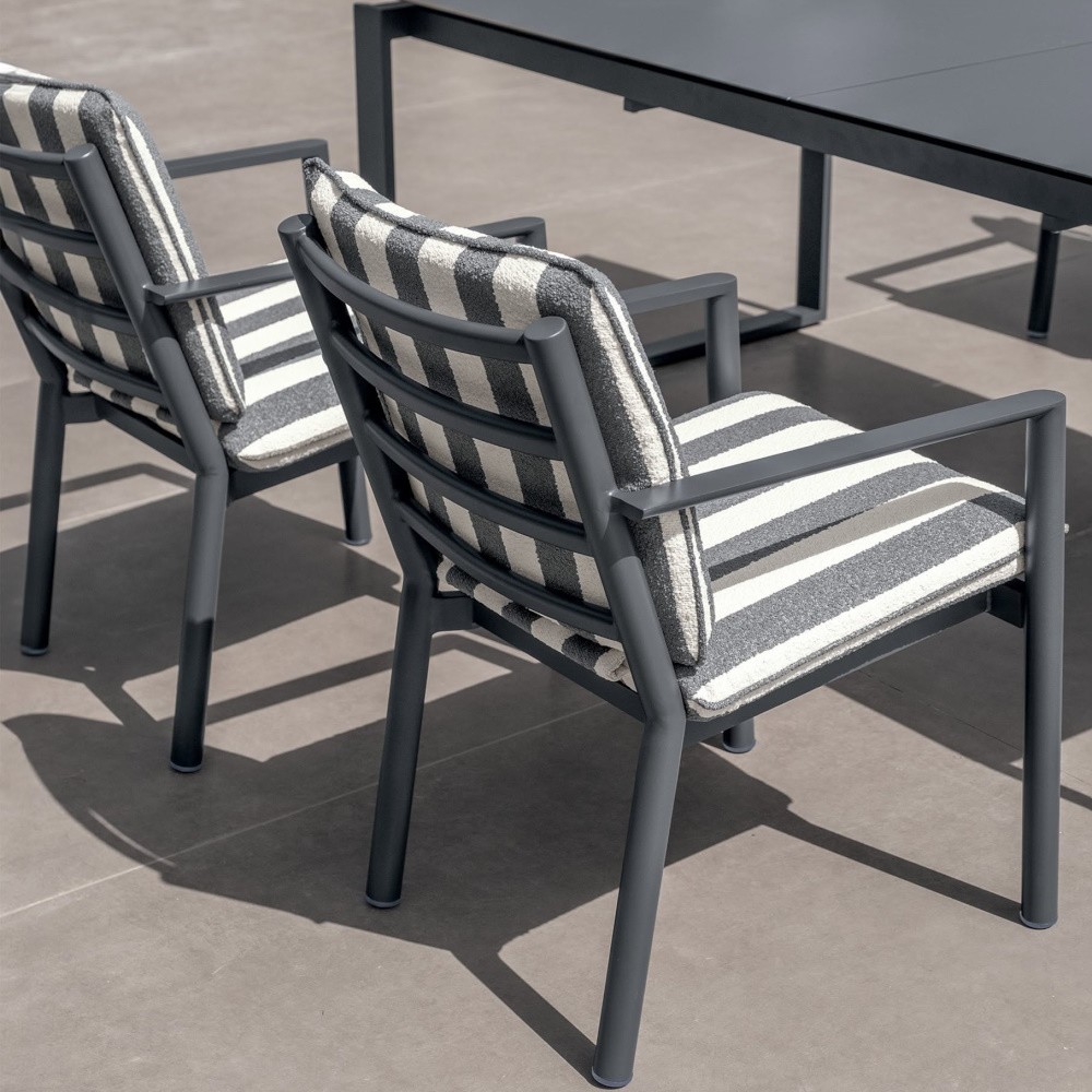 Linee nette, volumi asciutti e un tessuto rigato disegnano un profilo elegante ma discreto. Finn non cerca di stupire, ma di integrarsi con naturalezza nel paesaggio, trasformando terrazze, giardini e rooftop in luoghi di calma funzionale.