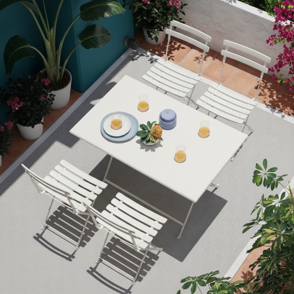 Il Tavolo da pranzo Arc en Ciel si adatta grazie alle sue dimensioni ad arredare balconi, terrazzi, e giardini. Il meccanismo di chiusura è semplice e pratico, rendendolo comodo da riporre in pochi istanti.