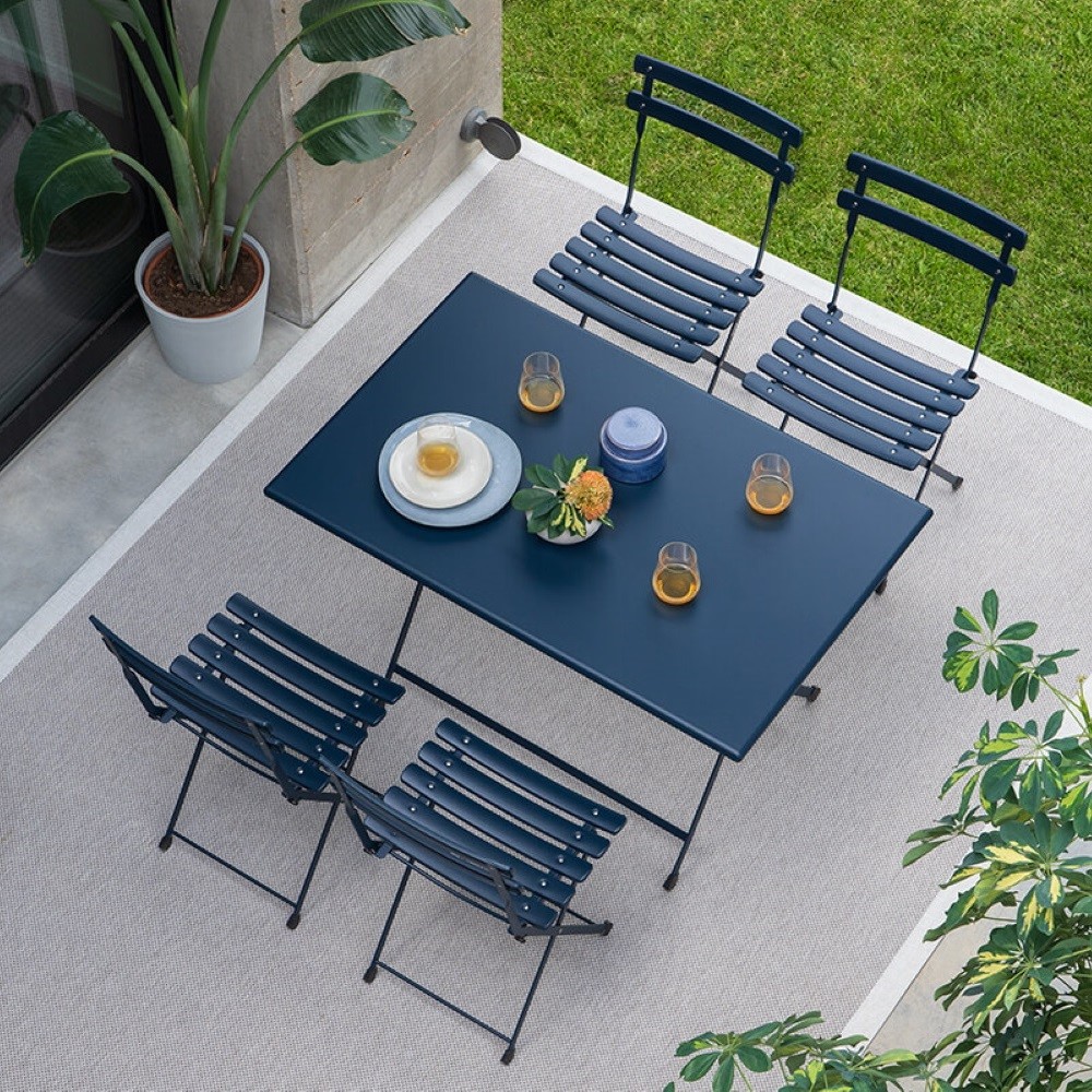 Arc en Ciel Emu è una pratico tavolo pieghevole in acciaio verniciato. Comodo da riporre. Quando è chiuso occupa pochissimo spazio.