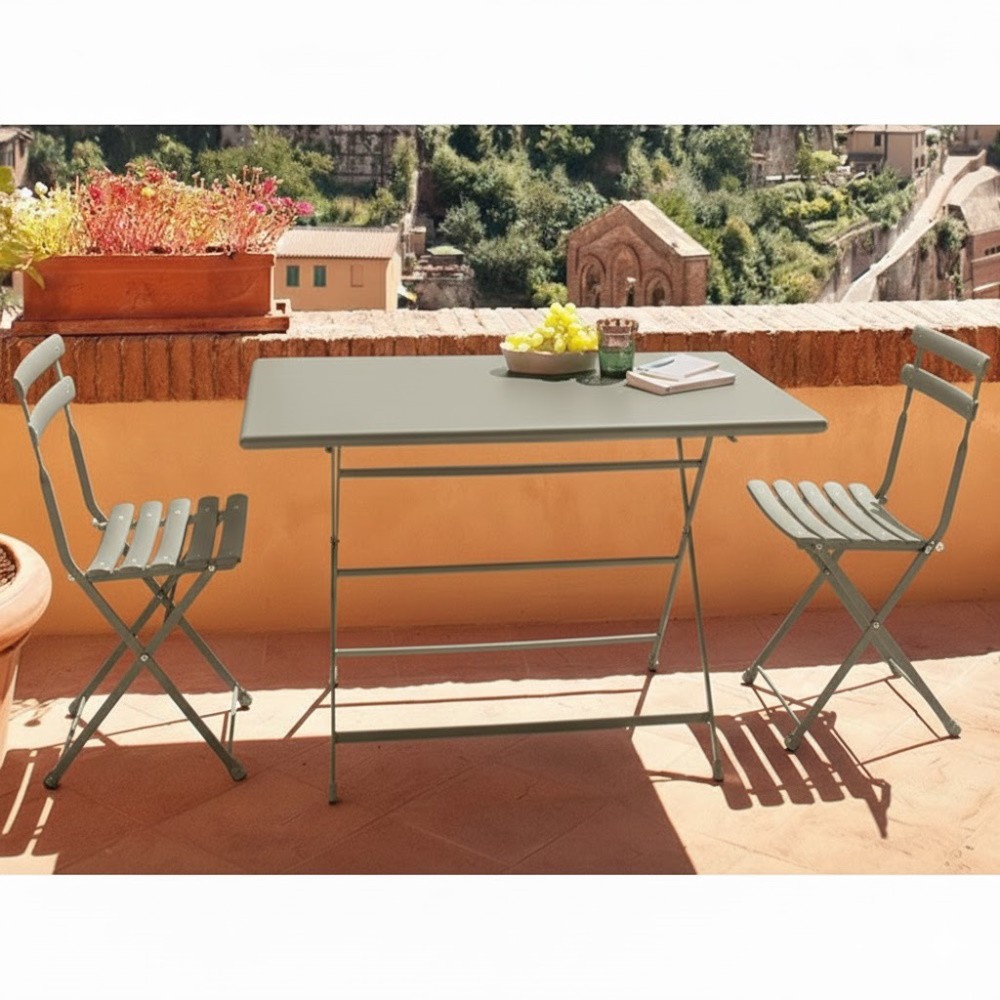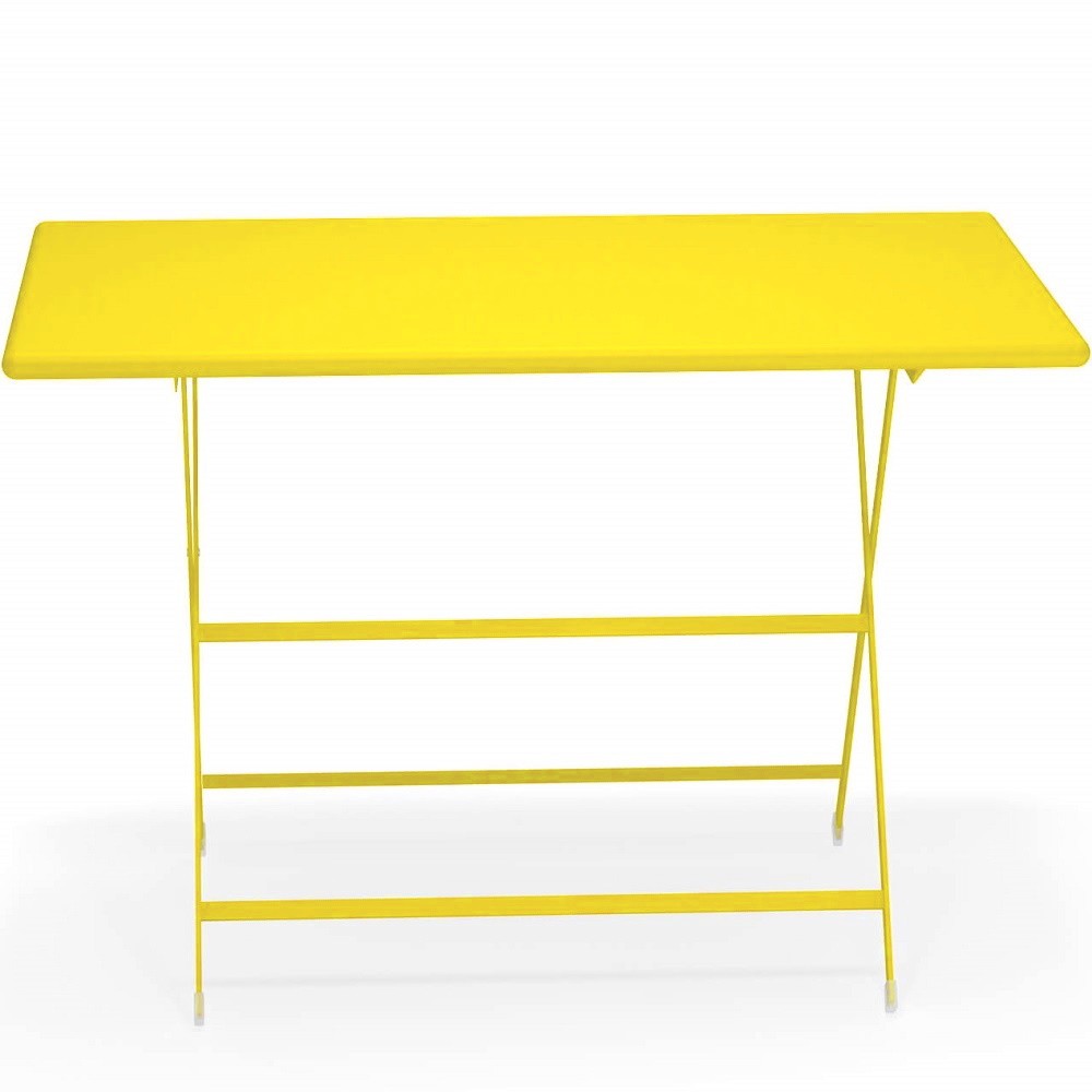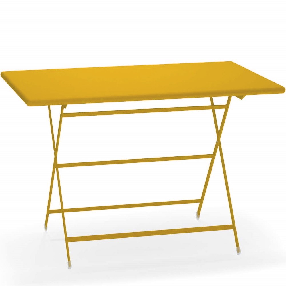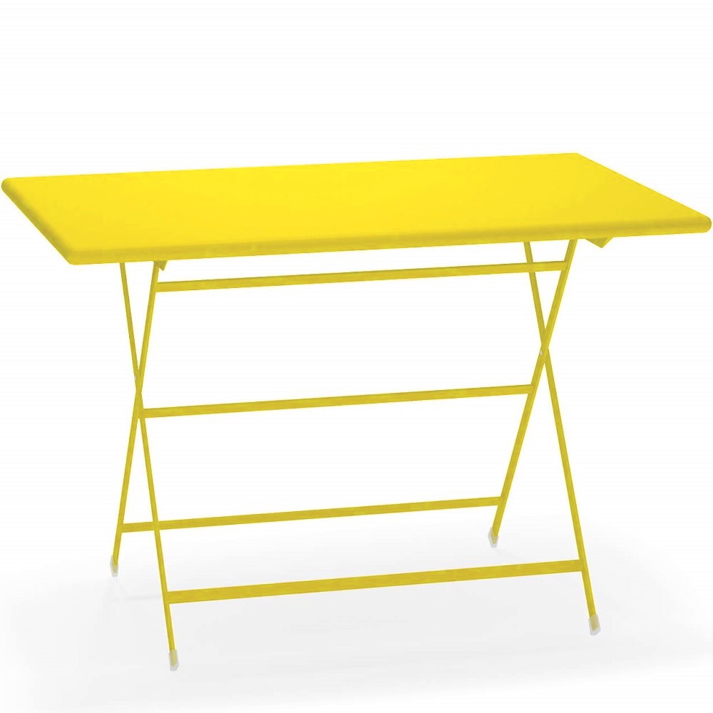 Arc en Ciel Emu è una pratico tavolo pieghevole in acciaio verniciato. Comodo da riporre. Quando è chiuso occupa pochissimo spazio.