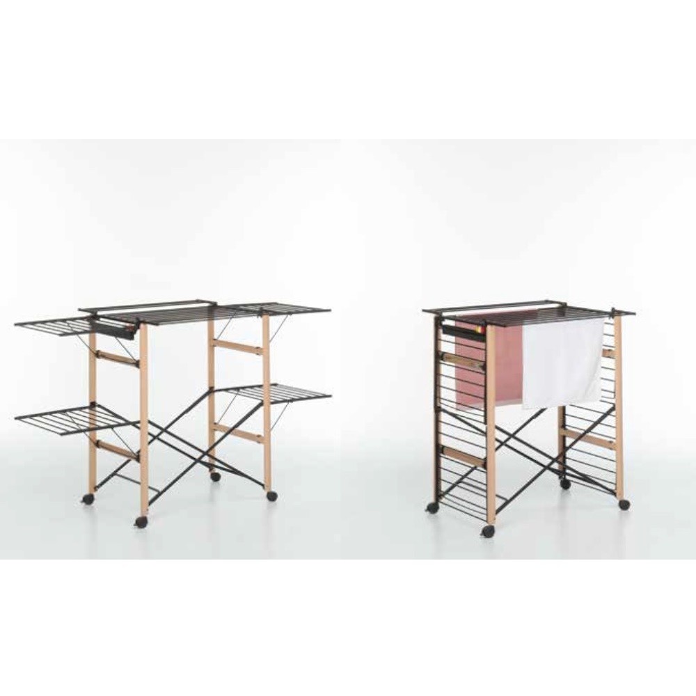 Gulliver 4.0 è modulabile in base alla quantità di bucato da stendere: ha ben 27 metri di filo per stendere i panni e, grazie a bracci laterali e frontali indipendenti con bacchette in alluminio verniciato, si apre secondo la quantità di bucato da asciugare. Gulliver 4.0 si chiude in pochissimo spazio, occupando solo 14 centimetri e restando anche in piedi da solo… e si sposta facilmente grazie alle robuste ruote frenanti. E’ posizionabile ovunque.