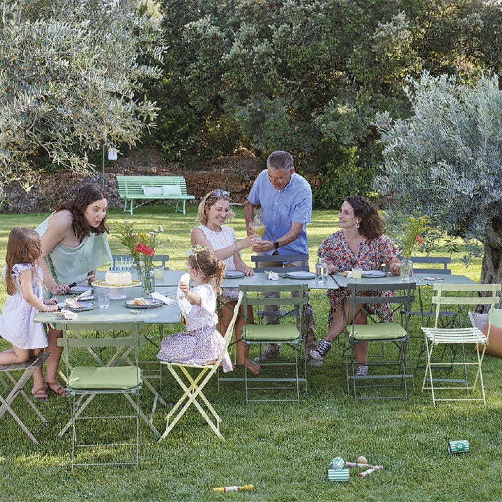 Tavolo rettangolare in metallo laccato, pieghevole, può accogliere a tavola fino a 6 persone. Da abbinare alle sedie Bistro pieghevoli disponibili in diverse varianti di colore.