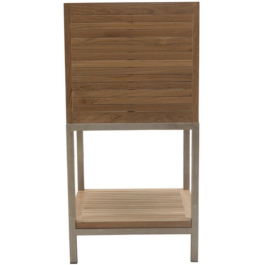 Contenitore per vasi alto in inox e legno di teak. Questo contenitore per vasi alto è cubico nella parte superiore, nella quale si possono inserire vasi di fiori o piante. Ideale se usato in coppie o in serie, per arricchire un ingresso o per delimitare lo spazio.