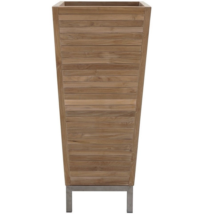 Contenitore svasato per esterni, alto, in legno di teak con base in acciaio inox. Ideale per piante e fiori. Su richiesta può essere ordinato il contenitore interno in zinco.