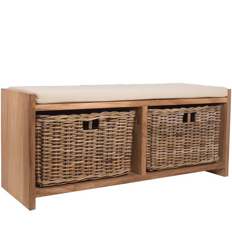Emily è una panca porta oggetti comprende due cesti in rattan nei quali potrete riporre occhiali, creme, giochi e riviste senza occupare ulteriore spazio. La struttura della panchina è in legno di teak, con finitura standard Fine Sanded. I cesti porta oggetti sono in rattan a finitura non pigmentata semi lucida.