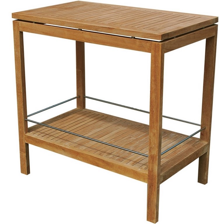 Carrello portavivande da giardino, in teak e acciaio inox. Avalon è dotato di ruote per essere spostato facilmente, dispone di un ampio piano d’appoggio per cibi e bevande e di un ripiano basso per avere ancora più spazio a vostra disposizione. Comprende un vassoio estraibile di misura cm. 60 x 37.