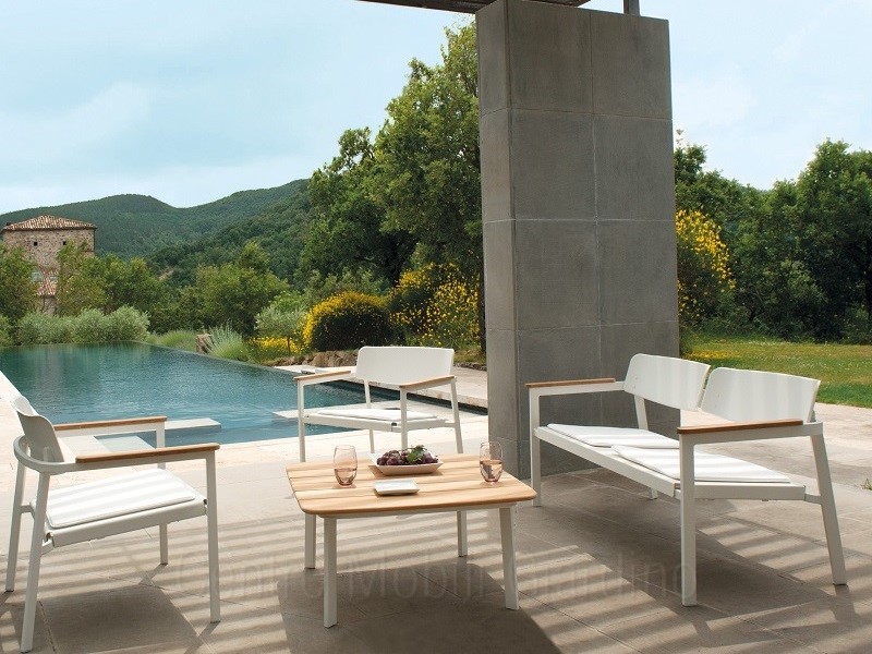 La collezione Shine dal design essenziale, è composta da una ampia gamma di arredi in alluminio e teak rendendo possibile trasferire un arredo indoor anche all’aperto. Sofa, poltrone lounge e tavoli bassi arredano con eleganza e stile aree relax o a bordo piscina. Il lettino in alluminio e EMU-Tex, dalle forme sobrie, è completato da una gamma varia di accessori. La collezione Shine comprende inoltre tavoli di varie dimensioni, fissi ed estensibili, per differenti esigenze di spazio. Questa linea di arredi è perciò completa e trasversale ai diversi contesti d’uso.