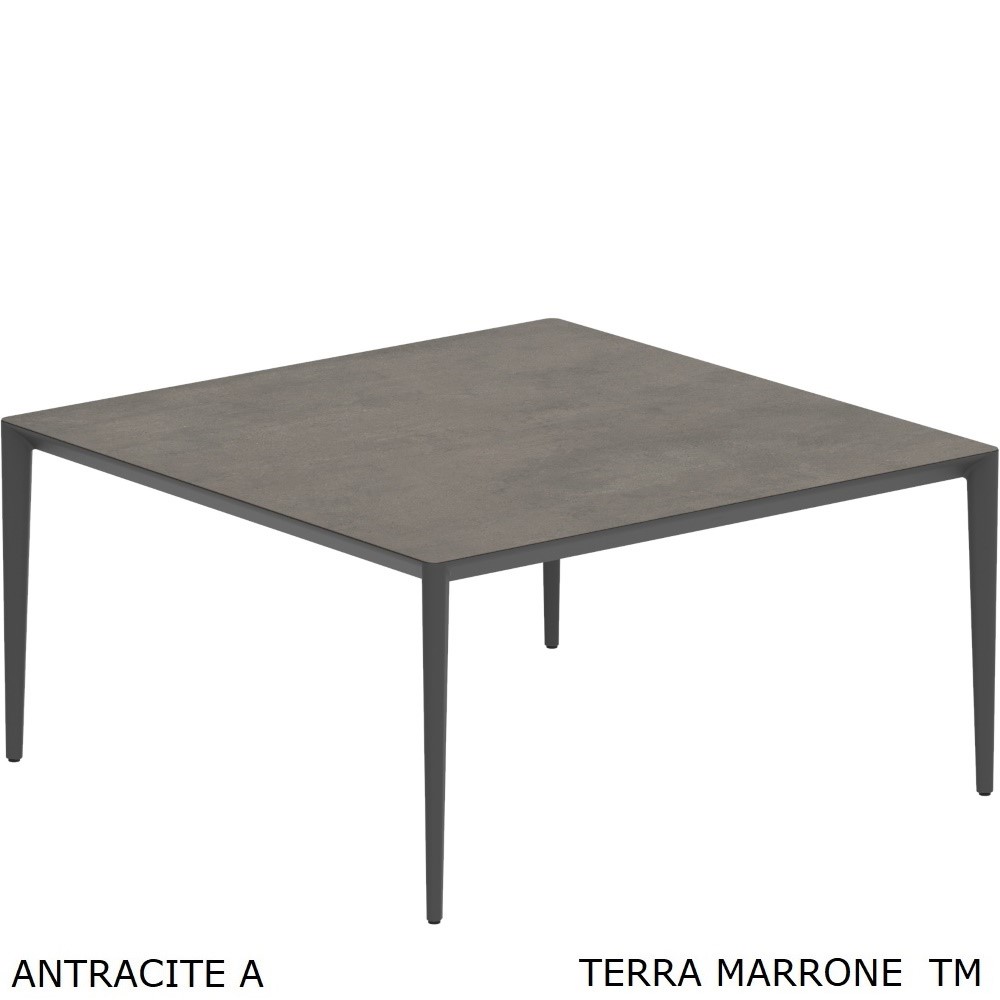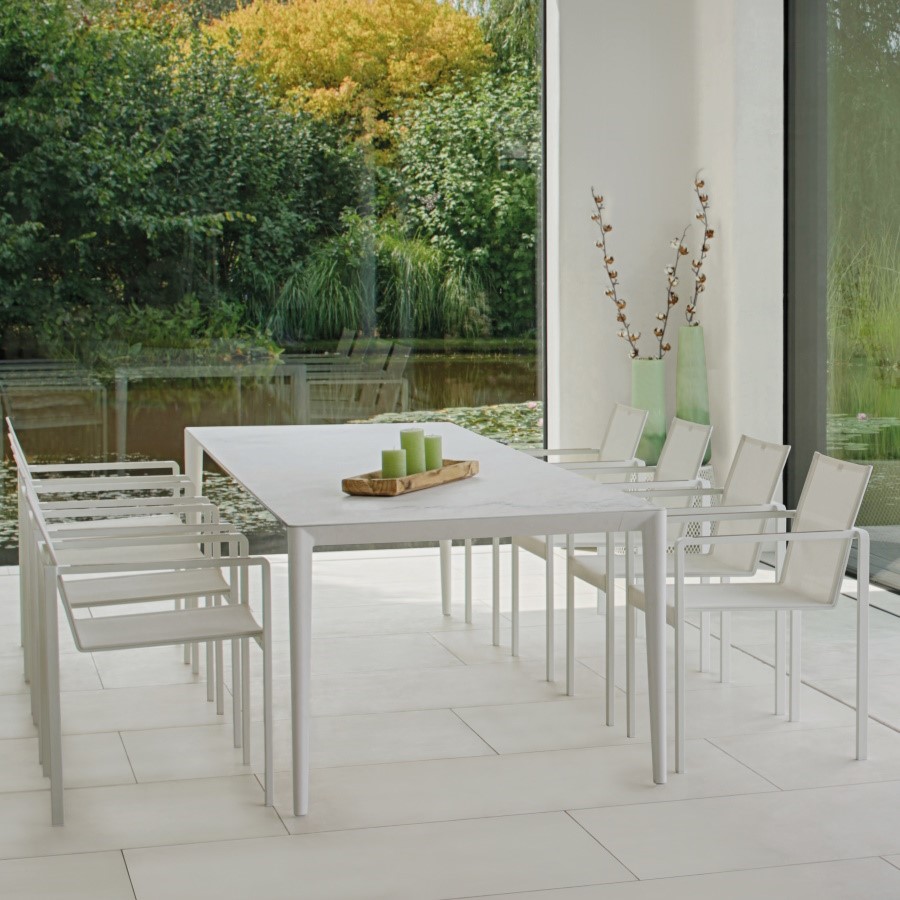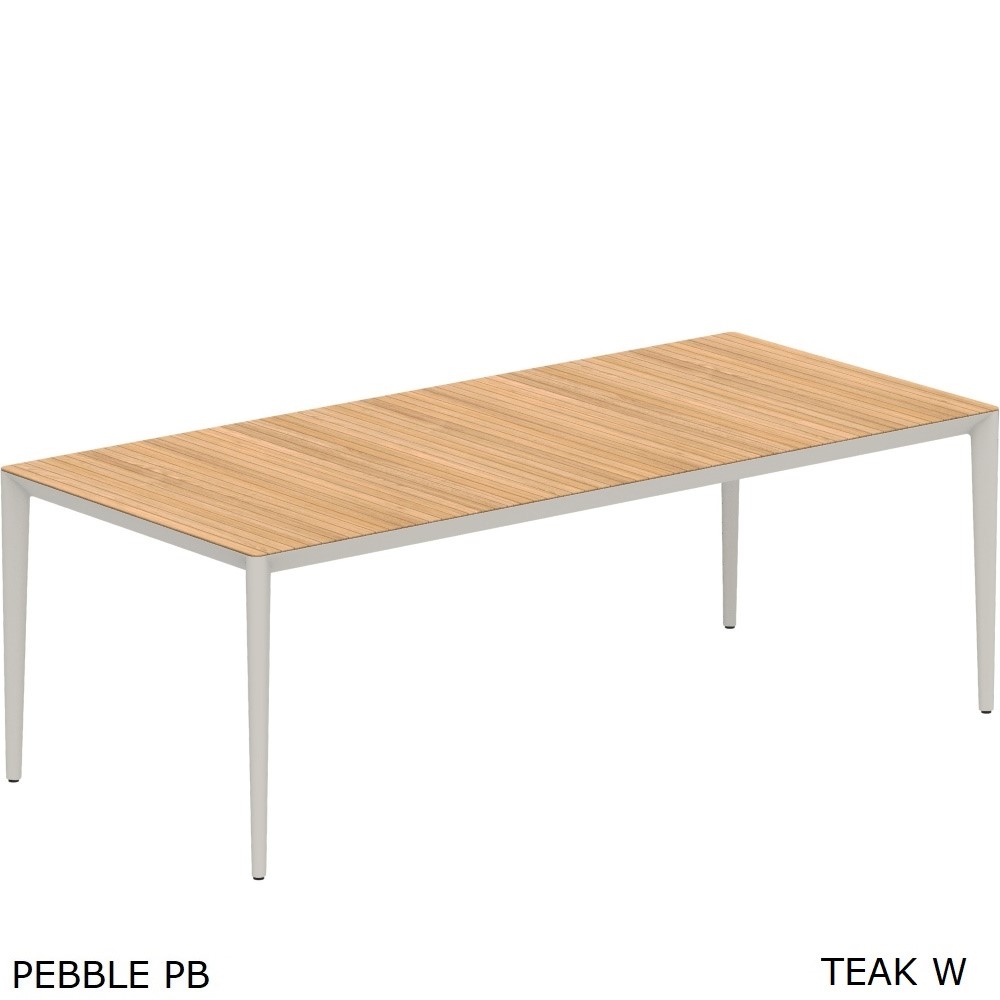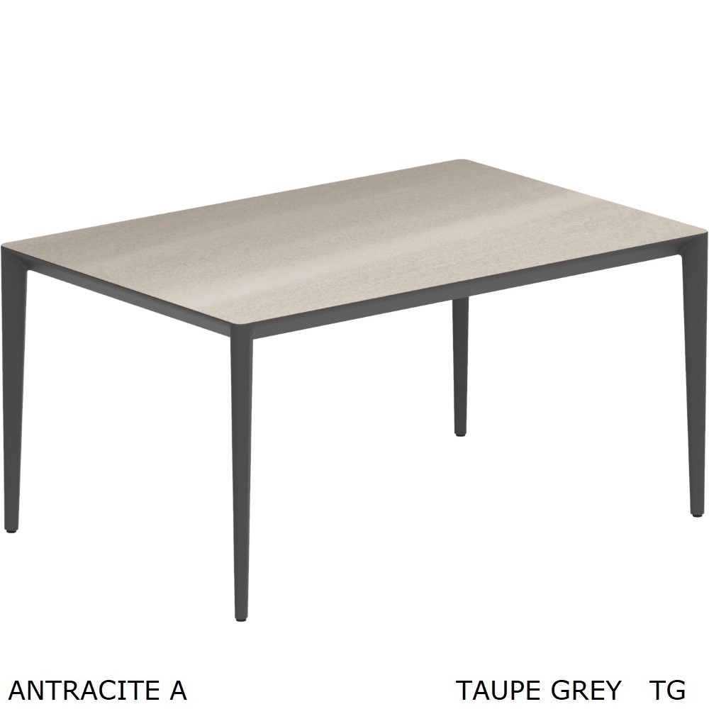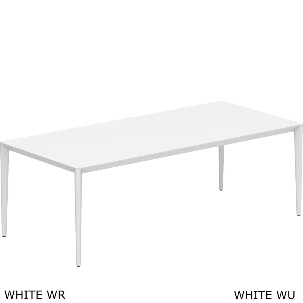 Purezza e raffinatezza, sono due caratteristiche stilistiche che descrivono al meglio la collezione di tavoli U-nite di Royal Botania. Nella versione in alluminio verniciato, il piano del tavolo si trova all'interno del telaio, quindi è visibile solo la superficie superiore. Questa caratteristica conferisce un aspetto molto puro e distinto.