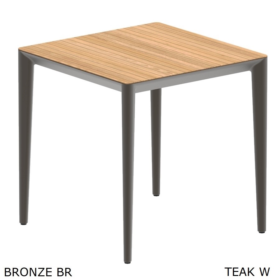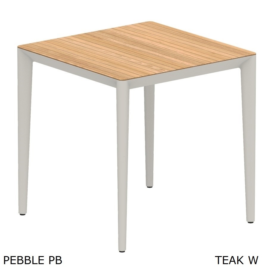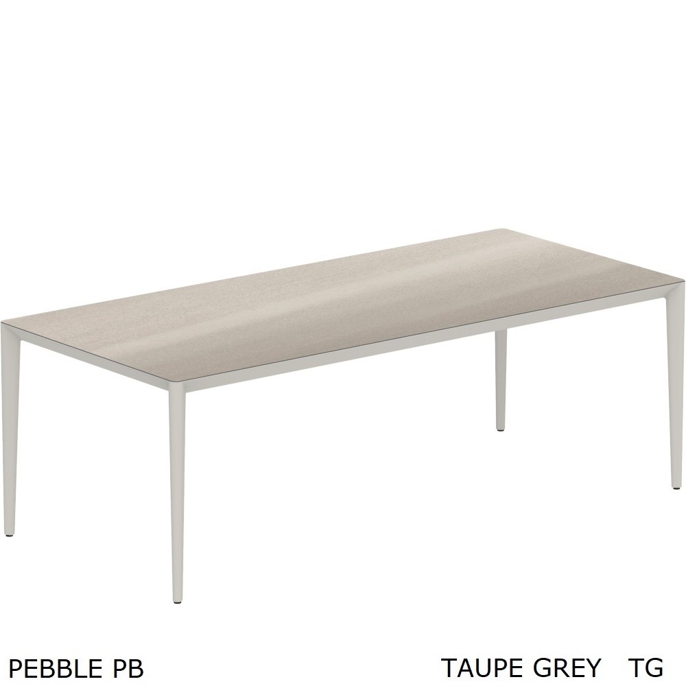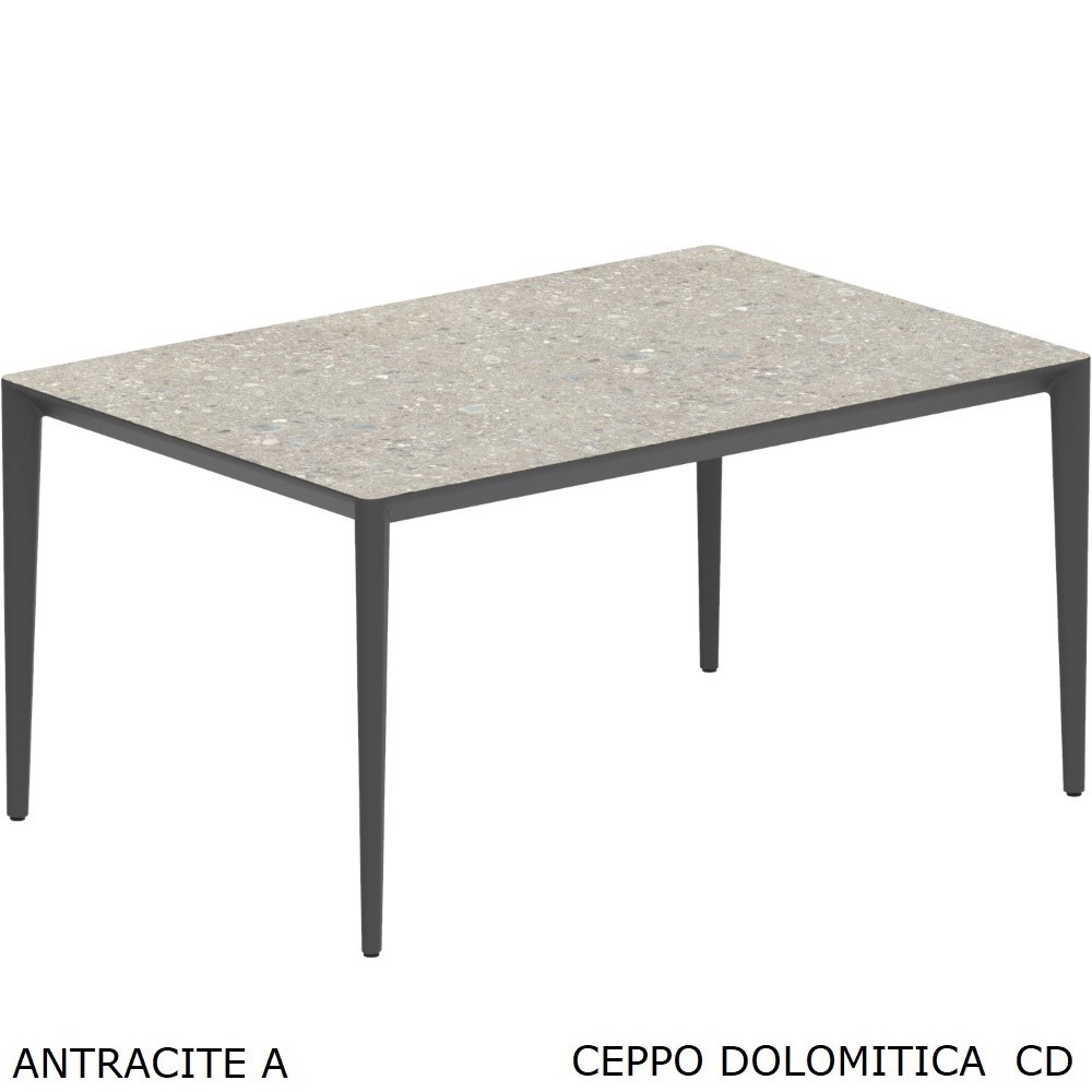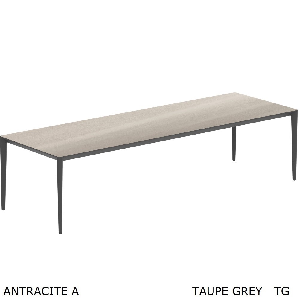 Purezza e raffinatezza, sono due caratteristiche stilistiche che descrivono al meglio la collezione di tavoli U-nite di Royal Botania. Nella versione in alluminio verniciato, il piano del tavolo si trova all'interno del telaio, quindi è visibile solo la superficie superiore. Questa caratteristica conferisce un aspetto molto puro e distinto.