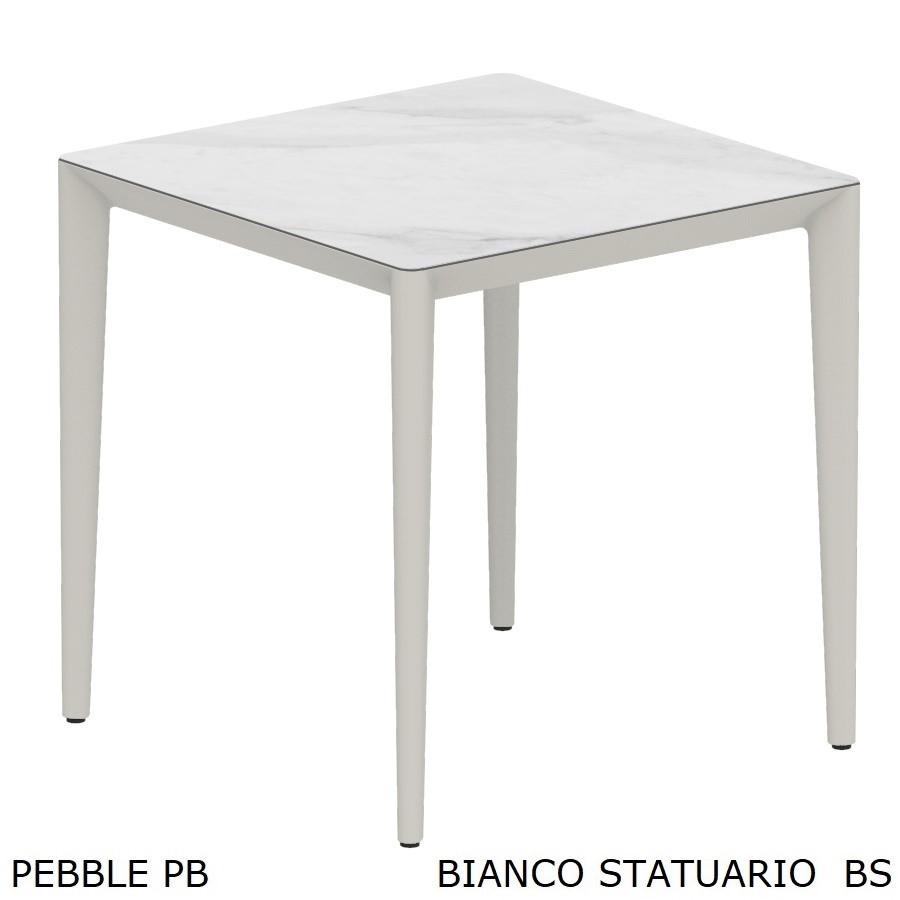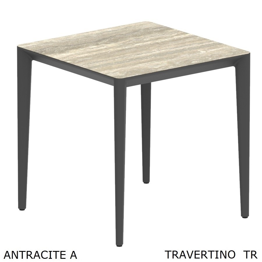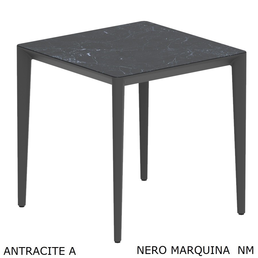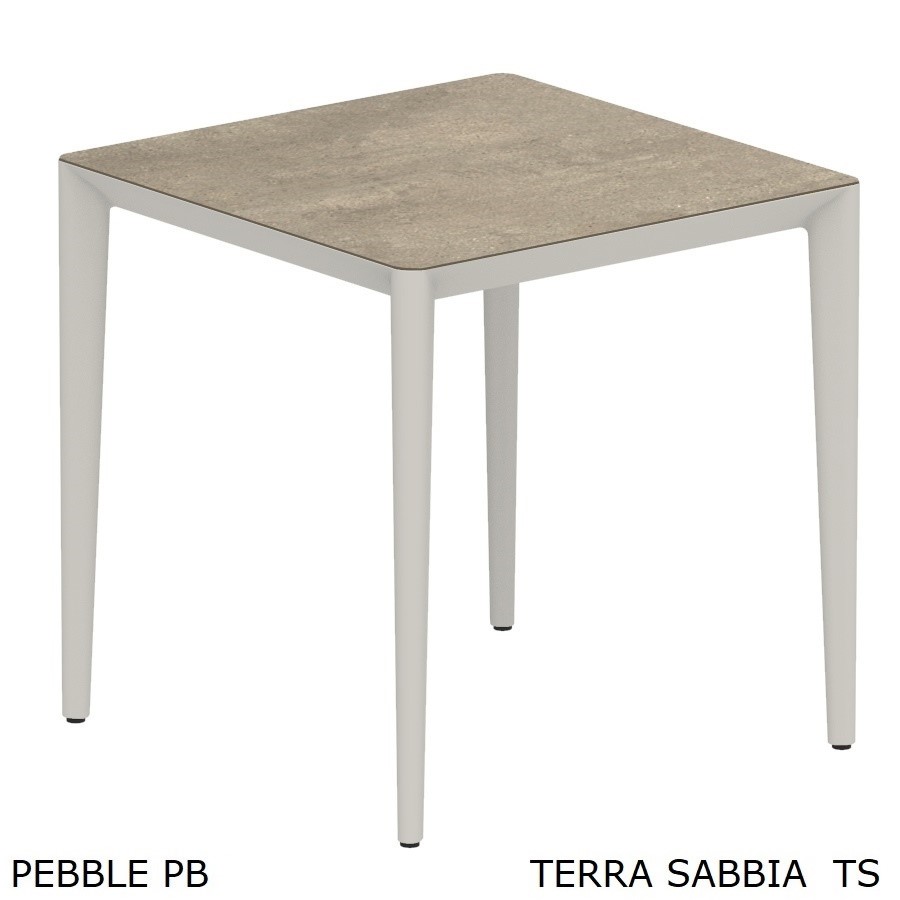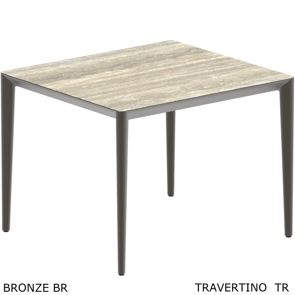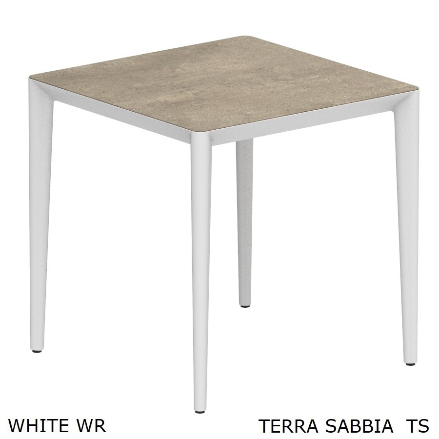 Purezza e raffinatezza, sono due caratteristiche stilistiche che descrivono al meglio la collezione di tavoli U-nite di Royal Botania. Nella versione in alluminio verniciato, il piano del tavolo si trova all'interno del telaio, quindi è visibile solo la superficie superiore. Questa caratteristica conferisce un aspetto molto puro e distinto.