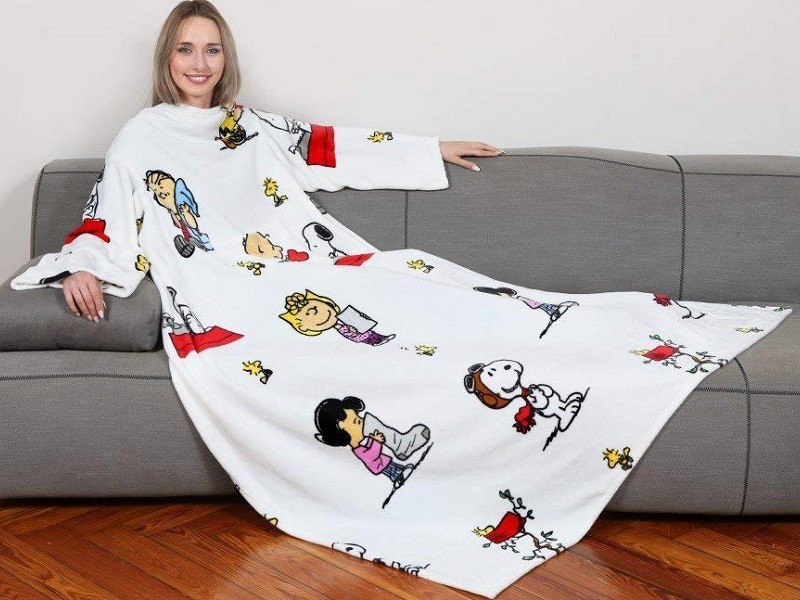 Con questo fantastico plaid di Snoopy con maniche si potrà stare comodi sul divano e liberi nei movimenti. Sul davanti ha inoltre una pratica tasca portaoggetti.