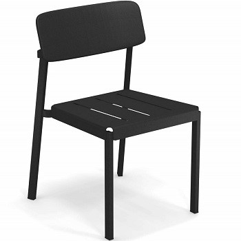 Lo schienale in acciaio inossidabile è fissato alla seduta in alluminio e consente varie combinazioni di colori.