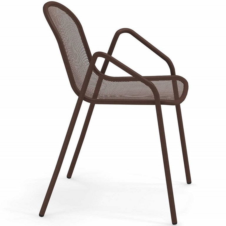 Questa sedia da esterni e’ realizzata con tubolare in acciaio, sedile e schienale in lamiera stirata traforata con il classico motivo Emu e si intona con qualsiasi stile di arredamento giardino, rustico o moderno.