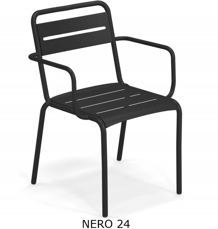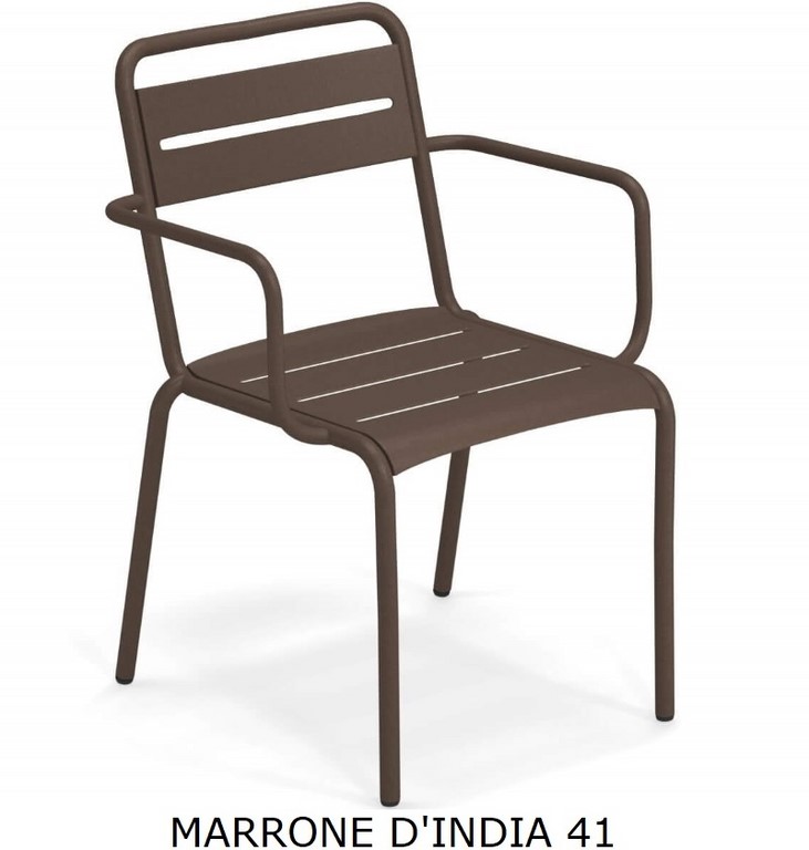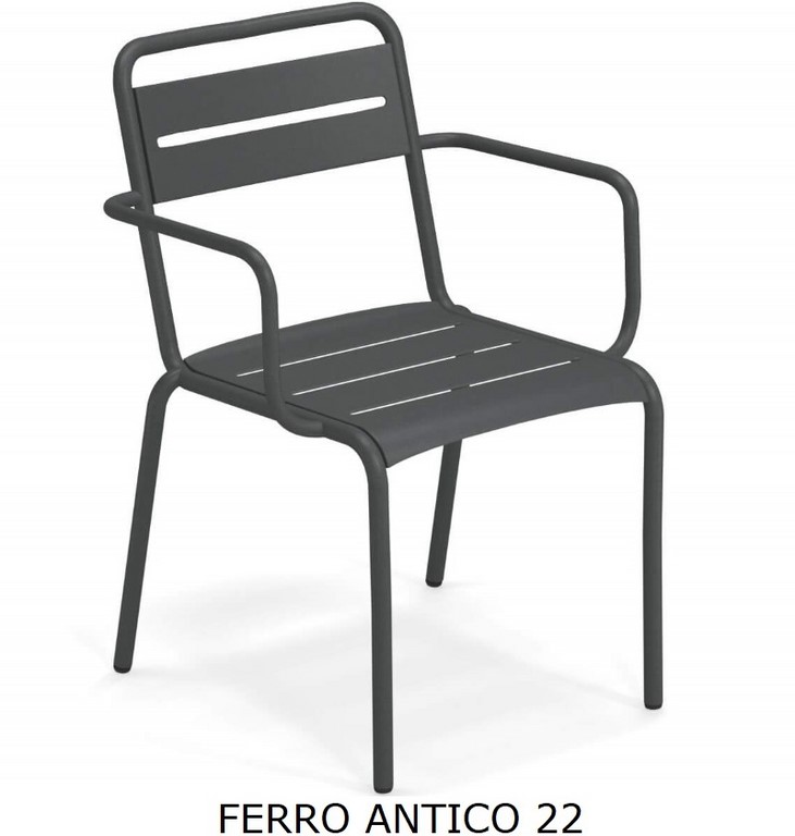 Le sedute sono realizzate in tubolare, il sedile e lo schienale sono in lamiera zincata a caldo. Questa sedia da giardino in alluminio verniciato presenta seduta e schienale ampi e comodi.