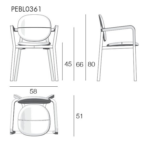 La poltroncina teak impilabile Pebbles richiama i ciottoli tondi che si trovano sulla riva di un fiume o al mare. Tra le sedie in teak, si distingue per le linee morbide e tondeggianti, che rendono la poltroncina teak molto accogliente.