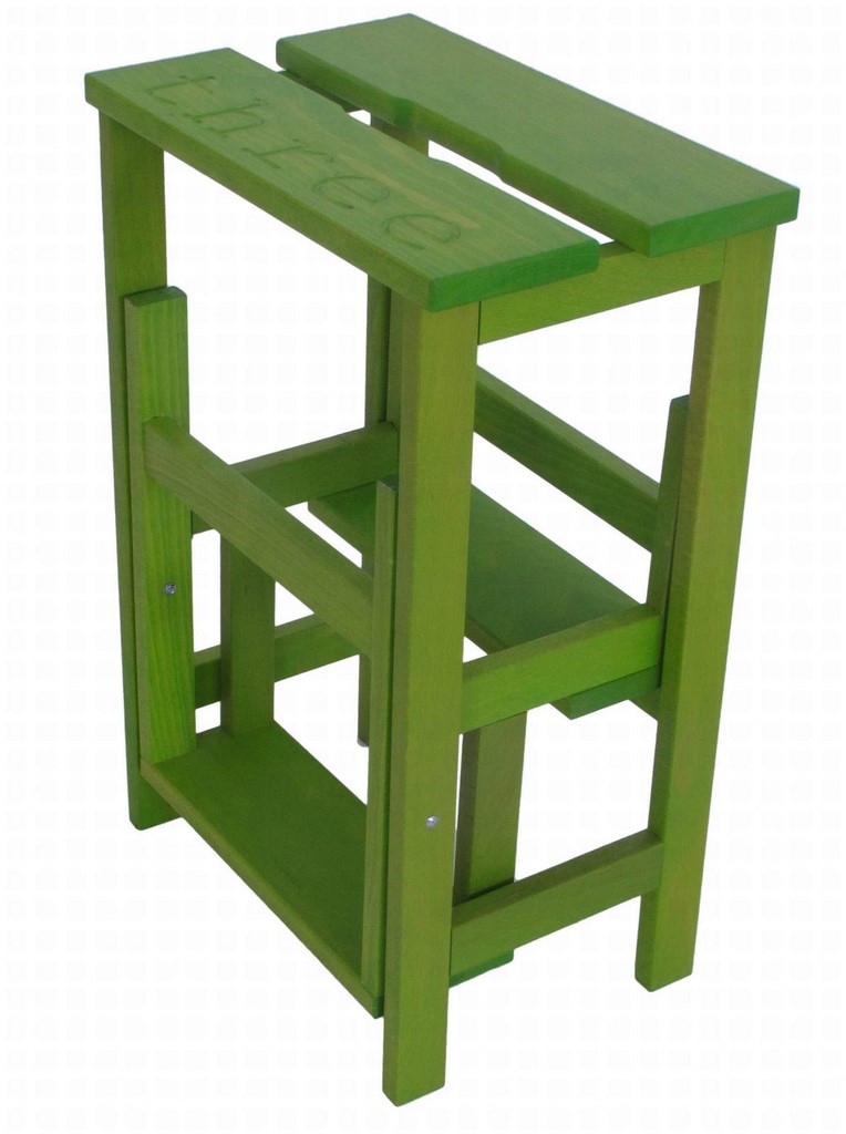 Sgabello scala retrattile in legno HAPPY NUMBERS Del Fabbro Verde Oliva