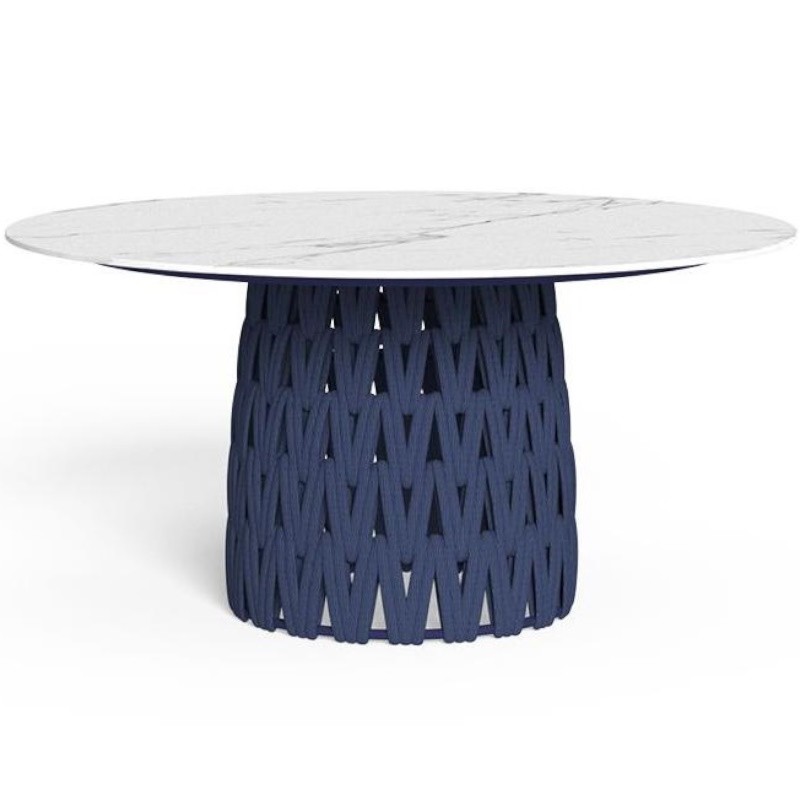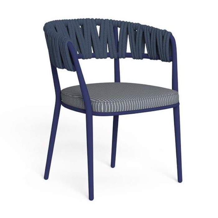 Tutti gli articoli sono caratterizzati da una struttura in alluminio verniciato a polvere disponibile in diverse varianti di colore, gli schienali sono rivestiti da un intreccio di corde. Cuscineria in tessuto, sfoderabile, facile da lavare e resistente agli agenti atmosferici. Imbottitura in quick dry foam. Tavolo pranzo con piani in gres porcellanato.